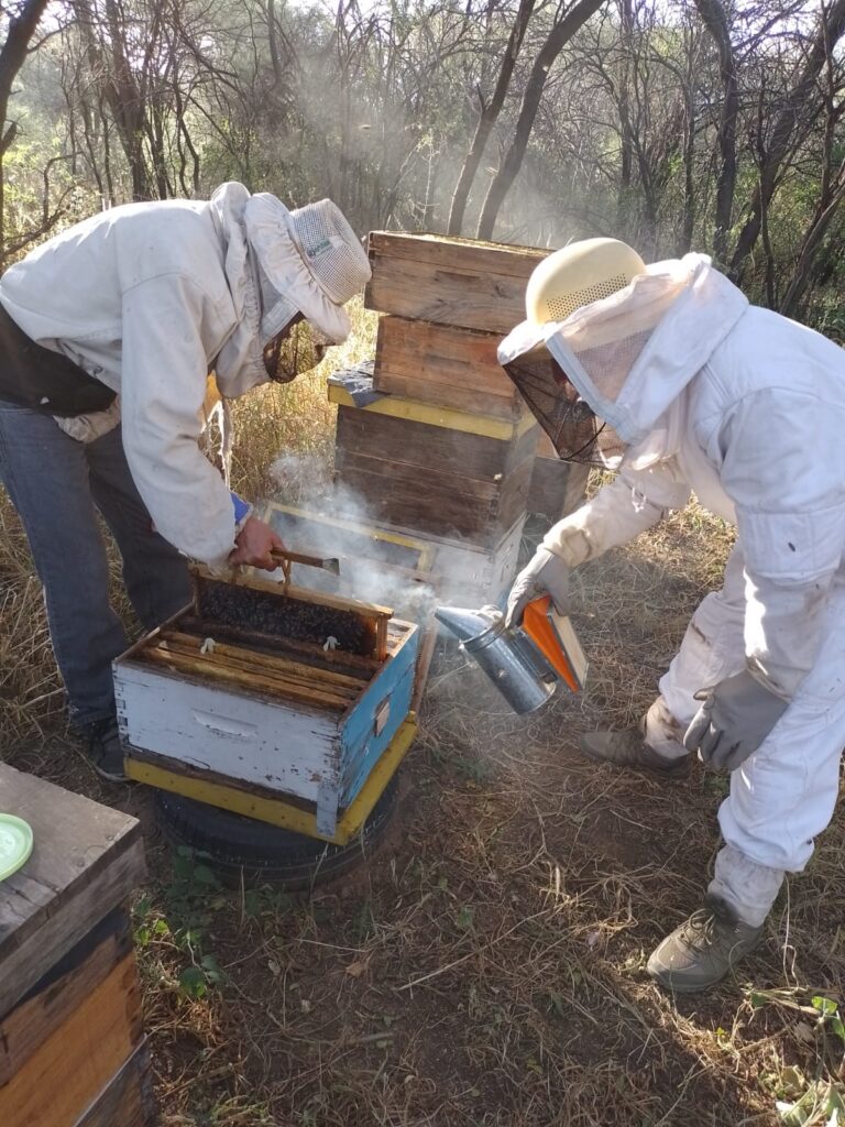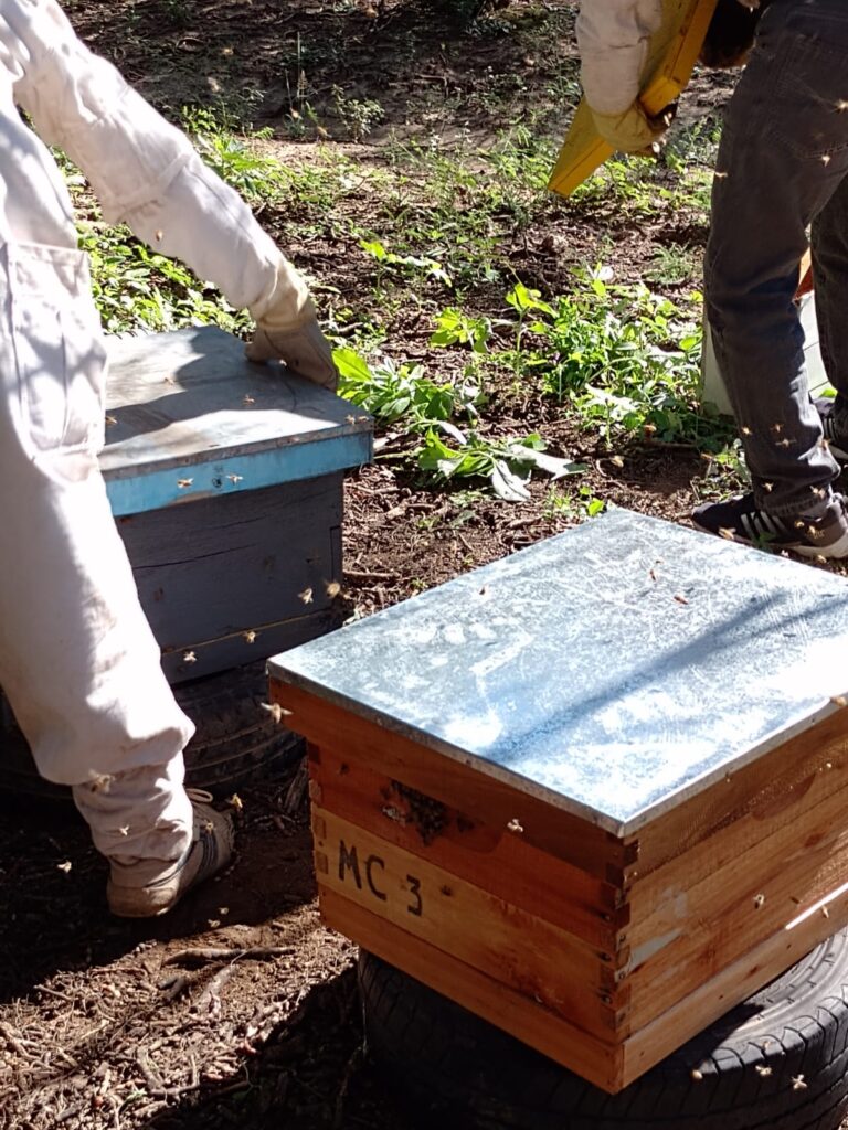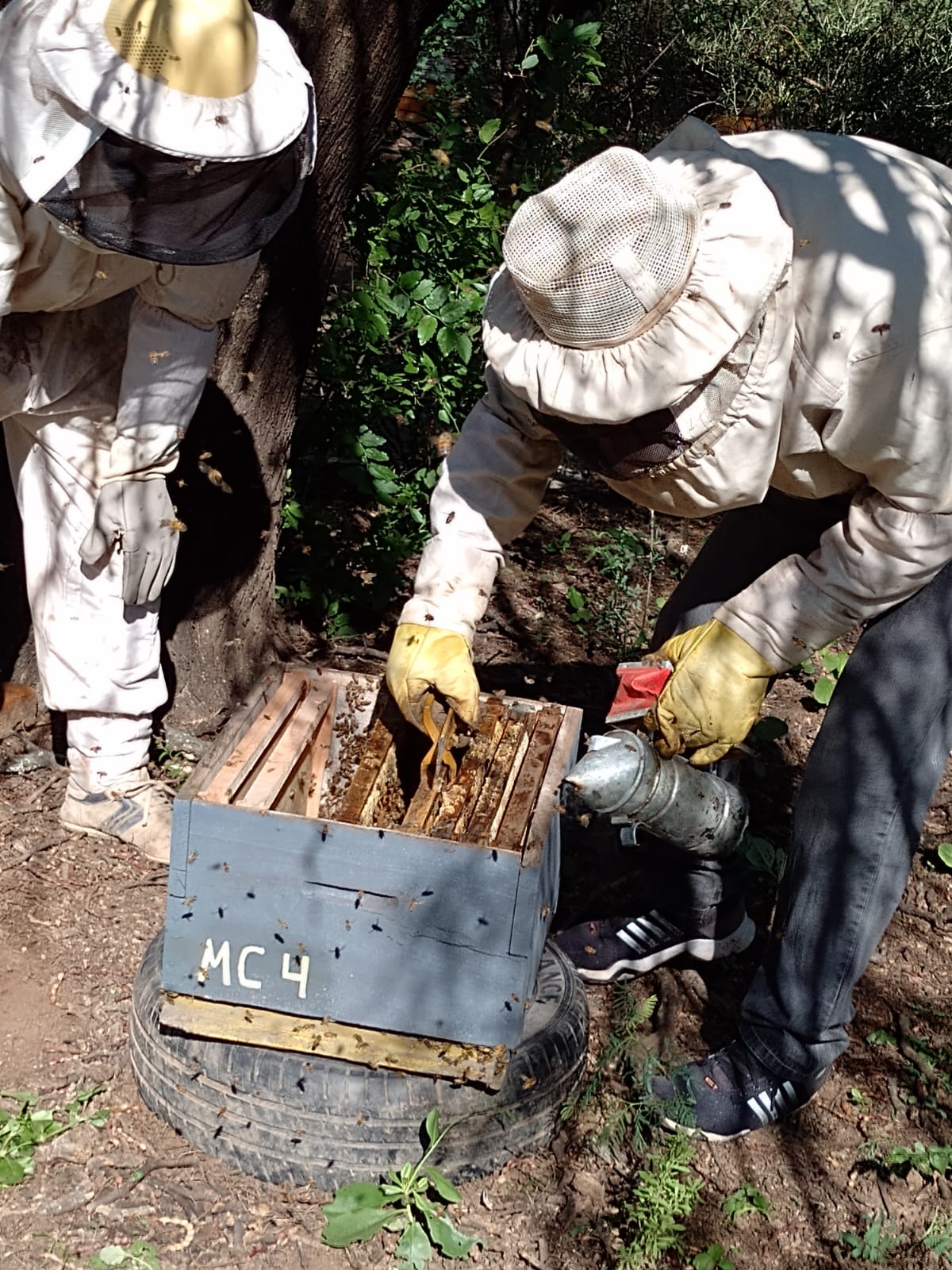 Desde la Asociación Martin Cunz quisimos generar un nuevo emprendimiento fortaleciendo lazos solidarios. Desde mayo 2022 comenzamos comprando 2 colmenas. Desde febrero 2023 tenemos 5 colmenas y en octubre de este año queremos tener 12 colmenas. No es fácil el trabajo porque hay que aprender TODO: La Vida de las abejas, el manejo de las colmenas, el clima, la curva de floración, proveerse de la indumentaria, de los insumos para las colmenas, y tantos otros conocimientos.